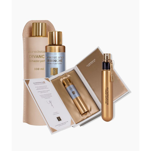 Divanché is the embodiment of purity, elegance, and quiet luxury. Inspired by the heavenly scent of blossoming Japanese Gardenia, this beautiful extrait de parfum unfolds with a touch of ripe fruits, leading into a floral heart of gardenia, jasmine, and tuberose.