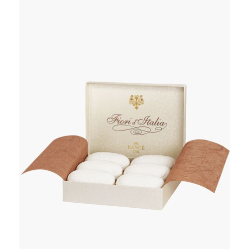 The timeless elegance of a perfume featuring delicate accents of white flowers and amber notes; soap bars are finely decorated with floral motifs, inspired by the historic Rancé soap moulds: discover Fiori d'Italia!