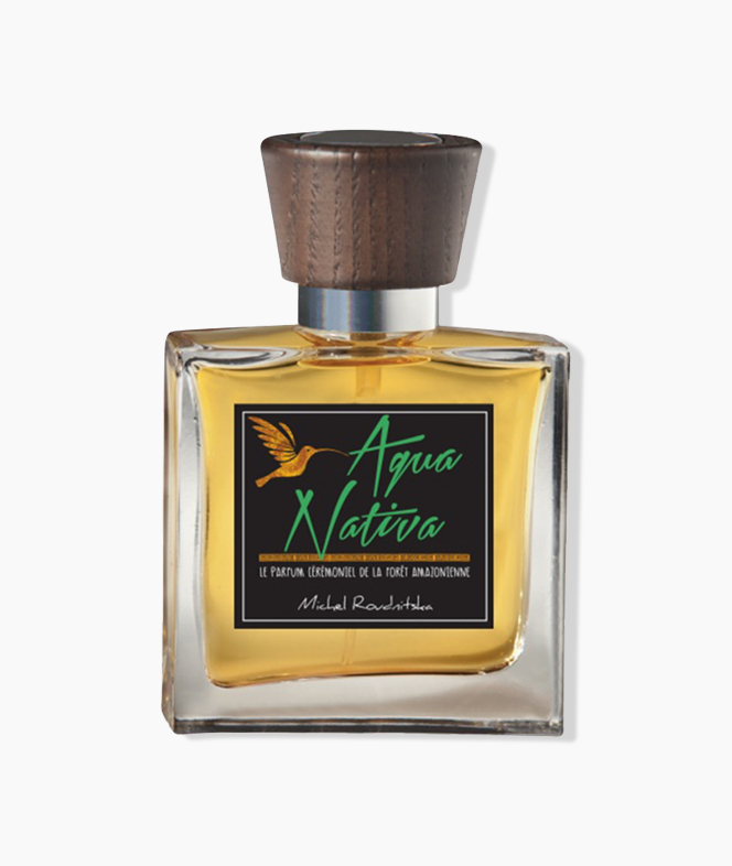 Aqua Nativa is a ceremonial perfume used in healing rituals by the Shipibos indian tribe of Amazonia. It is inspired by sacred plants of Amazonian forest such as piri-piri and palo santo of which the Shipibos have learnt to extract the essential oils as part of a project led by the NGO " Coeur de Forêt".